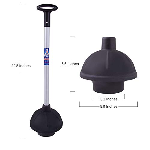 MR.SIGA 2-weg-rubberen toiletvulling met aluminium handgreep, 2-weg inzetstuk voor zowel toilet als afvoer, 15,2 cm extra grote rubberen zuignap, lange aluminium handgreep met comfortabele handgreep, stabiel en roestvrij.