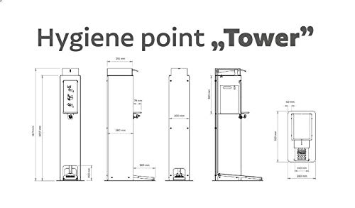Specification: Outdoor desinfectiezuil van roestvrij staal, kleur grijs, voor elk 1 liter middel met voetpedaal en opvangbak